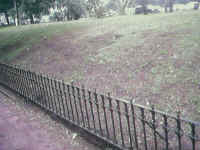 El coronamiento de la pared a nivel vereda esta compuesto de ladrillos de maquina pintados de gris. | |||||||||||||||||||||||||||||||||||||